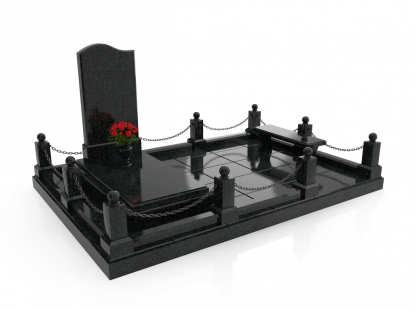Христианский памятник с колоннами выглядит сдержанно и в то же время необычно. Такое ритуальное изделие будет привлекать к себе внимание и позволит достойно выразить дань уважения покойному. Памятник состоит из вертикальной стелы черного насыщенного цвета с изогнутым верхом, двух симметричных колонн в классическом стиле по бокам плиты и вазы у основания. Закрытое лаконичное надгробие отлично дополняет другие составляющие ритуального изделия и придает ему практичности, ведь за таким памятником не потребуется особый уход. Формы и размеры ритуального изделия проработаны в соответствии с имеющейся нагрузкой и грунтом на выбранном кладбище, что гарантирует памятнику долговечность и исключает возможные искажения.