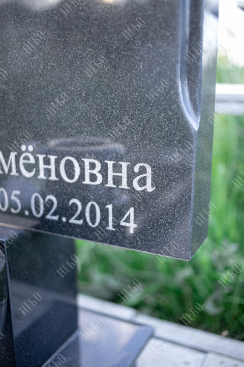 Для изготовления памятника использован гранит карельский габбро-диабаз. Это горная порода, отличающаяся прочностью и повышенной износостойкостью. Карельский габбро-диабаз устойчив к влаге и перепадам температур. Его плотность выше, чем у мрамора, поэтому именно его использовали при воздвижении вековых колонн исторических зданий. Гранитный памятник габбро-диабаз не требует особого ухода, обладает насыщенным черным цветом, что делает внешний вид памятника благородным и лаконичным.