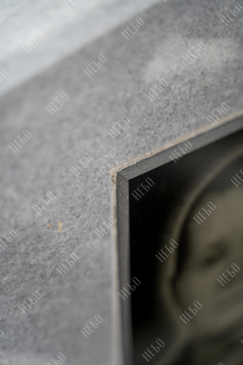 Фото на ритуальном изделии изготовлено методом гравировки алмазными иглами на черном граните. Далее фотография вставлена в памятник из выбранного материала, создавая эффект контрастности. Такой способ вставки изображения применяется в случае изготовления памятника из материалов светлых, серых, коричневых и других оттенков, гарантируя фотографии четкость и наилучшее качество, а готовому изделию долговечность. Благодаря использованию технологии гравировки на граните, фото не потускнеет со временем, не исказится и сохранит первозданный вид десятки лет.