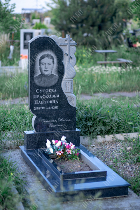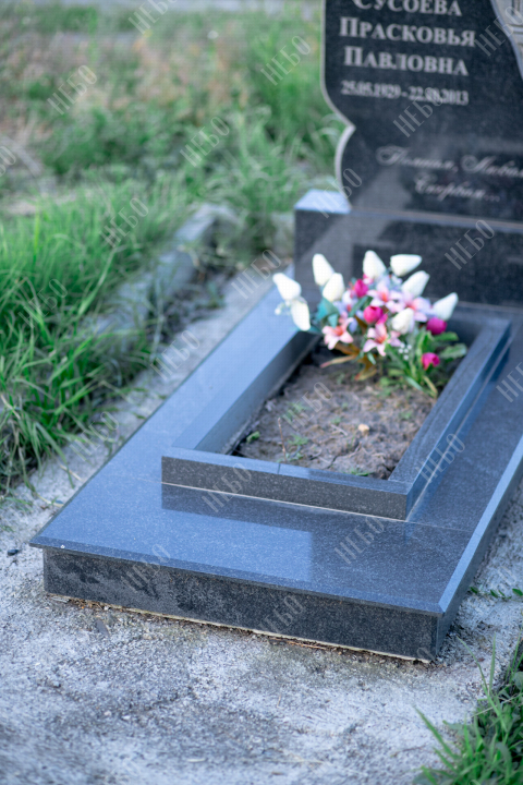 Памятник фрезерный с крестом и открытым надгробием. Использование фрезеровки в изготовлении ритуальных изделий гарантирует высочайшую точность исполнения запланированного дизайна. С помощью этой технологии в камне высекаются углубления по заданным макетам, придавая памятнику объем, позволяя комбинировать различные элементы и создавать сложные фигуры. На фрезерованном памятнике удачно контрастируют цвета и в солнечную погоду играют тени от объемных деталей. Открытое надгробие позволит в дальнейшем использовать пространство на его поверхности для высадки цветов или других растений. Размеры стелы и надгробия соответствуют заданным нормам при имеющейся нагрузке и исключают деформации изделия со временем.