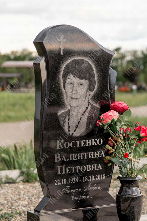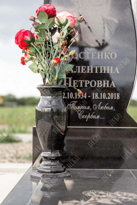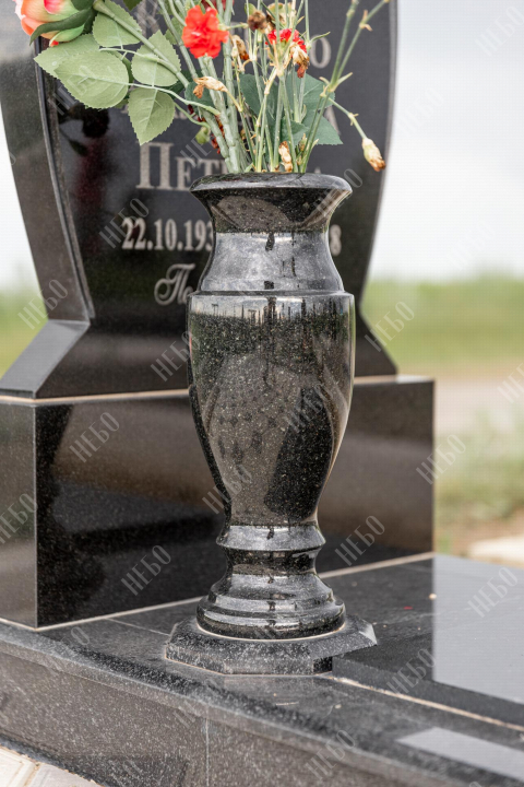 Памятник без креста с прямой стелой, вазой и закрытым надгробием выполнен в лаконичном черном цвете, заказать в Красносельском.