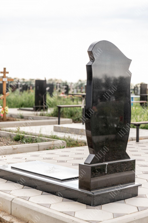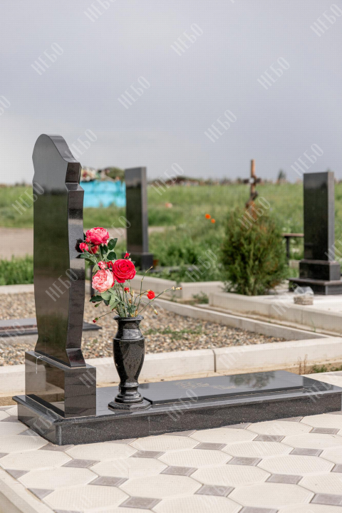 Памятник без креста с прямой стелой, вазой и закрытым надгробием выполнен в лаконичном черном цвете. Вертикальная гранитная плита изготовлена с использованием ассиметричных линий в дизайне памятника, что придает ритуальному изделию индивидуальность. Закрытое надгробие имеет правильную прямоугольную форму, ровную сплошную поверхность без дополнительных элементов, что значительно упрощает уход за ритуальным изделием. Размеры памятника и соотношение объемов стелы к надгробию проработаны специалистами с учетом имеющейся нагрузки и визуального восприятия. Такой подход гарантирует долговечность и исключает искажения памятника.