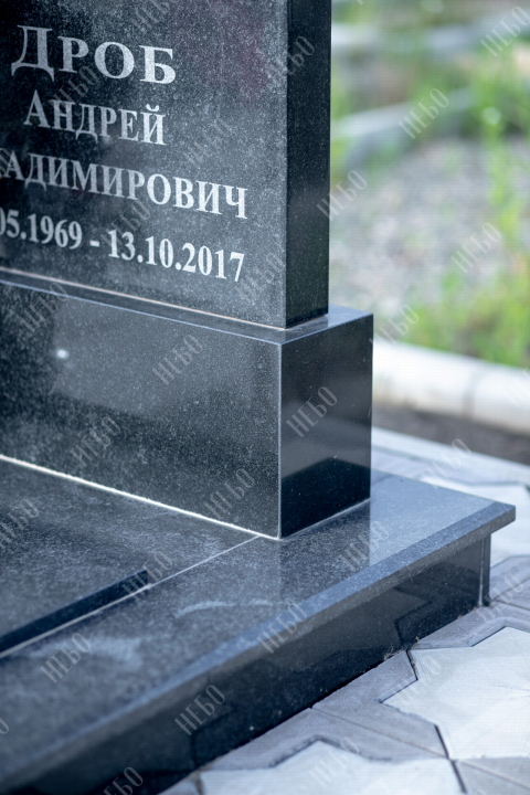 Для изготовления памятника использован гранит карельский габбро-диабаз. Это горная порода, отличающаяся прочностью и повышенной износостойкостью. Карельский габбро-диабаз устойчив к влаге и перепадам температур. Его плотность выше, чем у мрамора, поэтому именно его использовали при воздвижении вековых колонн исторических зданий. Гранитный памятник габбро-диабаз не требует особого ухода, обладает насыщенным черным цветом, что делает внешний вид памятника благородным и лаконичным.